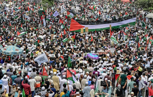 شهدت العاصمة دكا، مظاهرة حاشدة دعمًا لفلسطين ورفضًا للإبادة التي يرتكبها الاحتلال في قطاع غزة. ورُصد عدد من المتظاهرين وهم يرفعون صور الخليفة العثماني السلطان عبد الحميد الثاني، في إشارة رمزية إلى ماضي الدعم الإسلامي لفلسطين، واستحضارًا لدوره التاريخي في حماية القدس. وأوضح مشفق حسن جامي، أحد منظمي التظاهرة، أن رفع الصور يعكس الإلهام الذي يستمده المحتجون من موقف الخليفة، إضافة إلى دعوة لتعزيز الدور التركي في وقف العدوان الإسرائيلي، لاسيما عبر المنصات الدولية الإسلامية.