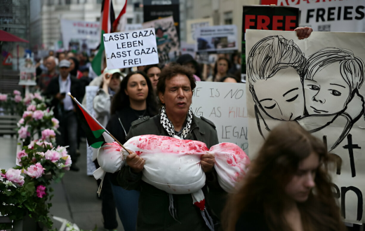 نظم العشرات من أنصار فلسطين مسيرة صامتة قرب البرلمان في العاصمة النمساوية فيينا. حملوا خلالها دمى أطفال مغطاة بالطلاء الأحمر، تعبيرًا عن حزنهم على أرواح شهداء غزة، وللمطالبة بتدخل دولي لوقف حرب الإبادة الإسرائيلية.