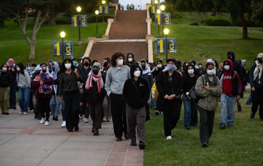 شهدت جامعة كاليفورنيا في لوس أنجلوس سلسلة مظاهرات نظمتها مجموعة “طلاب من أجل العدالة في فلسطين”، بدأت بعرض فيلم وثائقي حول الاحتجاجات الطلابية المؤيدة لفلسطين، وتحوّلت إلى مسيرة جابت الحرم الجامعي وانتهت أمام المركز الطبي رونالد ريغان.