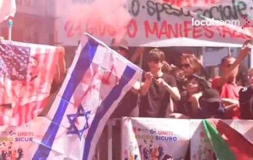 شهدت مدينة تورينو الإيطالية تصعيدًا رمزيًا خلال مسيرة الأول من مايو، حيث أقدم متظاهرون على إحراق أعلام "إسرائيل" والولايات المتحدة والاتحاد الأوروبي في ختام الفعالية، احتجاجًا على سياساتهم في غزة ودعمهم لكيان الاحتلال.