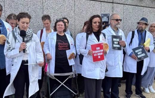 أعربت خلالها المنظمة عن تضامنها مع سكان غزة، مطالبةً برفع الحصار الإسرائيلي فورًا ودعم وقف إطلاق نار دائم. وشارك العشرات من الأطباء في الوقفة، رافعين الخبز ومرددين شعارات مثل “خبز لا قنابل!” و”دعوا الأطفال يأكلون!”قال كرامة كويميرل، طبيب أعصاب أطفال مقيم في بوسطن، إن "سوء التغذية والتجويع والهجوم المتعمد على الرعاية الصحية في غزة يُنذر بإبادة أعداد كبيرة من سكان غزة”.