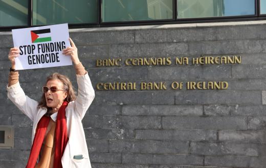 رفع المحتجون لافتات تندد باستثمار أموال عامة وخاصة في شركات مرتبطة بالصناعات العسكرية الإسرائيلية، أو شركات تدعم الاحتلال بشكل مباشر، مطالبين بإنهاء هذه العلاقات فورًا. وقال النشطاء إن البنك المركزي الأيرلندي يساهم، عبر صناديق الاستثمار العامة، في تمويل شركات تزود الاحتلال بالسلاح أو تشارك في بناء المستوطنات غير القانونية، وهو ما يتعارض مع القوانين الدولية ومبادئ حقوق الإنسان.