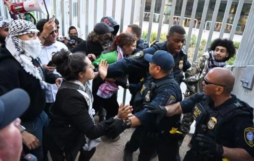 جاء ذلك بعد احتجاج داخل مبنى الهندسة متعدد التخصصات، الممول جزئيًا من شركة "بوينغ" وطالب المحتجون بقطع العلاقات مع الشركة بسبب دورها في العدوان على غزة، ورفعوا لافتات تندد بمقتل طالب هندسة فلسطيني. وقالت الجامعة إن المعتقلين سيواجهون تهمًا تشمل التعدي على الممتلكات وتدميرها والسلوك غير المنضبط.