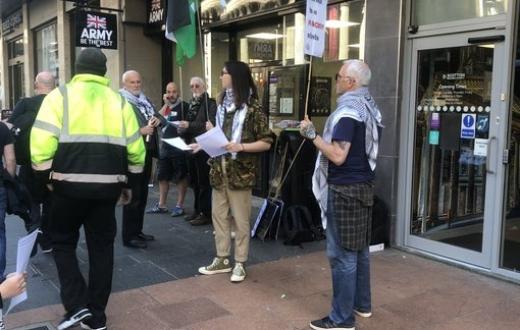 وندد المحتجون بدور الحكومة البريطانية في تسليح طائرات سلاح الجو الملكي وتوجيهها، وتقديم المعلومات الاستخباراتية العسكرية لكيان الاحتلال. واتهم المتظاهرون زعيم حزب العمال، كير ستارمر، بتوفير الغطاء السياسي والمعدات والدعم العسكري الذي يساهم في القتل الجماعي والإبادة الجماعية وتجويع الشعب الفلسطيني، مطالبين بوقف فوري لكافة أشكال التعاون العسكري مع "إسرائيل".
