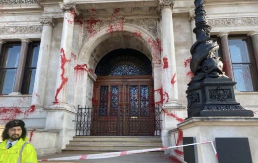 وقد شملت العملية تحطيم الواجهات الزجاجية للمقر وتلطيخها بالطلاء الأحمر، في رسالة رمزية تجسد الدماء الفلسطينية وتدين التواطؤ مع آلة الحرب الإسرائيلية.