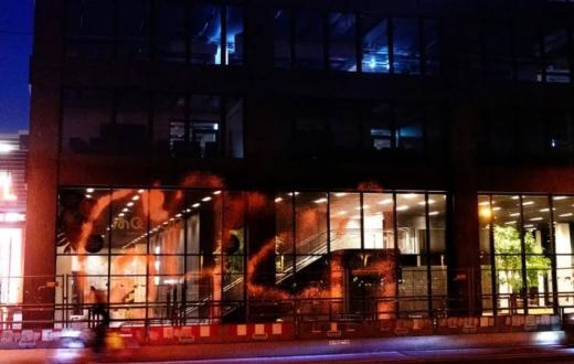 حيث قام الناشطون بطلاء كلمة “غزة” على المبنى باستخدام اللون الأحمر، في إشارة إلى الدماء التي تُسفك في غزة. وجاء لتوجيه الأنظار إلى تواطؤ شركة "أمازون" في جرائم الإبادة الجماعية ضد الفلسطينيين في قطاع غزة.