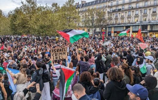 شهدت العاصمة الفرنسية باريس مظاهرة مؤيدة لفلسطين، وذلك بعد أيام من مشاركة الرئيس الفرنسي إيمانويل ماكرون في موجة الإدانة الدولية للحصار الإسرائيلي المفروض على غزة، والذي أدى إلى تعرض مئات الآلاف من سكان القطاع لخطر المجاعة.وطالب المتظاهرون مقاطعة الاحتلال الإسرائيلي وفرض عقوبات عليه في الجرائم الشرسة التي يتعرض لها الفلسطينيون.