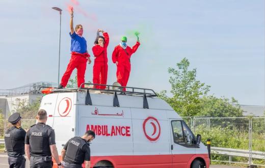 في الذكرى السابعة والسبعين للنكبة، نفّذ نشطاء من "حركة فلسطين"، بينهم طبيب، خطوة رمزية وجريئة عبر استخدام سيارة إسعاف فلسطينية مُعاد تصميمها كرمز للمقاومة، لتكريم أرواح الشهداء الذين ارتقوا بالقصف الإسرائيلي، بمن فيهم العاملون في القطاع الصحي الفلسطيني.
