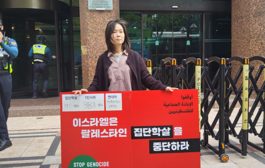 أفادت حركة المقاطعة في كوريا بأن الاعتصام الفردي اليومي أمام سفارة الاحتلال مستمر لرفض الإبادة الجماعية بحق الفلسطينيين في غزة، وقد بلغ يومه الـ386 أمس الاثنين.