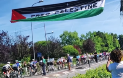 رفع العلم الفلسطيني بثاني أهم سباق للدراجات بالعالم