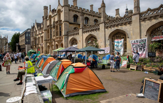 أقام طلاب من مجموعة "كامبريدج من أجل فلسطين" مخيمًا احتجاجيًا في حديقة كلية ترينيتي مساء الجمعة، مطالبين الجامعة بالكشف عن استثماراتها وسحبها من شركات الأسلحة المرتبطة بالاحتلال، متهمين الجامعة بـ"التواطؤ في الإبادة الجماعية" في غزة.
