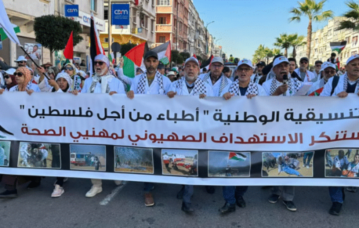 شارك عشرات الأطباء والممرضين في المغرب، الأحد، في وقفة احتجاجية بالعاصمة الرباط، بدعوة من "التنسيقية المغربية أطباء من أجل فلسطين"، للمطالبة بحماية الطواقم الطبية في قطاع غزة ووقف الإبادة الجماعية هناك.