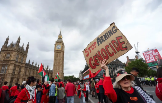 بتنظيم من حملة التضامن مع فلسطين، احتشد آلاف المتظاهرين، الأربعاء، ضمن فعالية حملت عنوان "الخط الأحمر لفلسطين"، مطالبين بوقف تصدير السلاح إلى "إسرائيل" وفرض عقوبات عليها بسبب ما اعتبروه جرائم حرب تُرتكب في غزة.