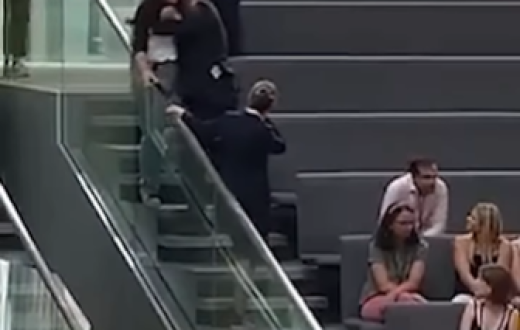 هتفت المتظاهرة "يداك ملطختان بالدماء" و"الحرية لفلسطين"، اعتراضًا على موقف الحكومة الألمانية من العدوان الإسرائيلي على غزة، مقاطعةً وزير الخارجية الألماني “يوهان فادبول” خلال جلسة برلمانية في برلين.
