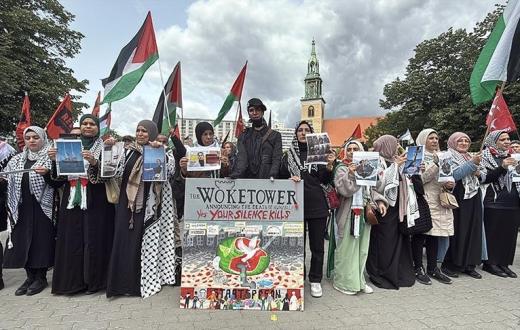 وطالب المحتجون أمام مبنى بلدية برلين بالإفراج عن 12 ناشطًا كانوا على متن السفينة، من بينهم الناشطة الألمانية ياسمين آجار. ورفع المتظاهرون لافتات تندد بالحصار الإسرائيلي على قطاع غزة، وتصف إسرائيل بـ"دولة إرهابية". كما دعا المتظاهرون الحكومة الألمانية إلى التحرك والضغط للإفراج عن النشطاء المحتجزين من قِبل الاحتلال.