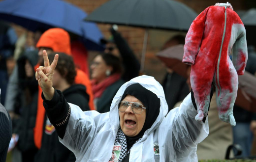 تجمّع العشرات من المتظاهرين المؤيدين لفلسطين أمام مكتب رئيس الوزراء الأسترالي أنتوني ألبانيز في سيدني، احتجاجًا على احتجاز القوات الإسرائيلية لناشطين من "تحالف أسطول الحرية".