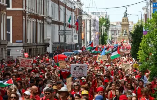 خرج عشرات الآلاف من المتظاهرين في مدينة لاهاي الهولندية، يوم أمس الأحد ، في مسيرة ضخمة دعمًا لغزة ورفضًا للعدوان المستمر عليها من قبل الاحتلال.
