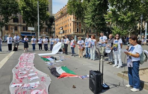 نظم العشرات من الصحفيين والعاملين في مجال الإعلام الإيطالي، مساء أمس الأحد، وقفة في ساحة بورتا سان جيوفاني بالعاصمة الإيطالية روما، رفضًا وتنديدًا بجرائم الاحتلال الإسرائيلي بحق الصحفيين الفلسطينيين.