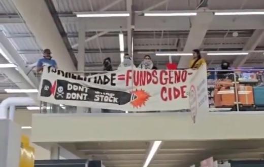 وردّد النشطاء شعارات داخل المتجر مؤكدين أن المنتجات الصهيونية مغموسة بدماء الفلسطينيين، في إشارة إلى الجرائم والانتهاكات التي يرتكبها جيش الاحتلال بحق أهالي غزة.