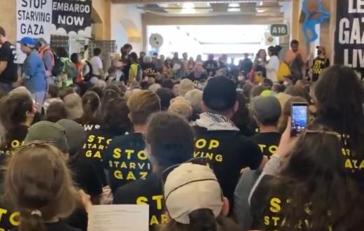 تجمّع مئات من اليهود المناهضين للإبادة الجماعية في مظاهرة جماعية داخل مبنى العبارات في نيويورك، للتنديد بالعدوان الإسرائيلي على غزة. ورفع المشاركون لافتات وشعارات تُذكّر المتسوقين والمارّة بـ”عدم التواطؤ” في جرائم الحرب، مطالبين بوقف الدعم العسكري والسياسي لـ”إسرائيل”.