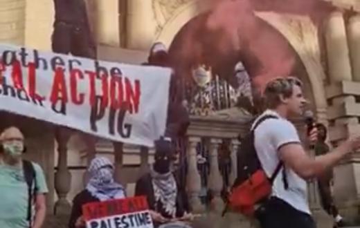 رفع خلالها المتظاهرون شعار “ارفعوا صوت الحقيقة!”، دعمًا لحركة فلسطين التي أعلنت الحكومة البريطانية حظرها بموجب قوانين مكافحة الإرهاب.
