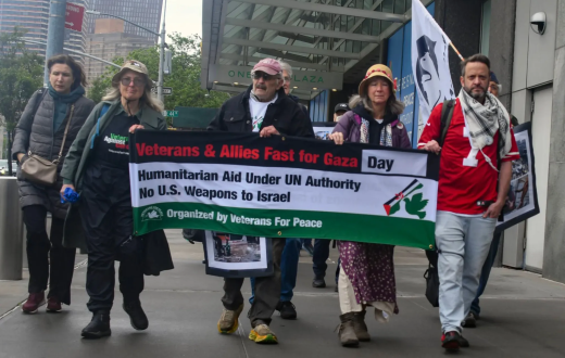 نفّذ عشرات الأعضاء من منظمة "قدامى المحاربين من أجل السلام" إلى جانب عدد من الشيوخ الأميركيين "كبار السن"، وقفة عصيان مدني أمام القنصلية الإسرائيلية في نيويورك، احتجاجًا على الإبادة الجماعية في غزة.