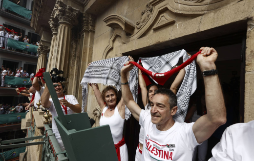 وقال الناشط إدواردو إيبيرو ألبو من التحالف إن هذه فرصة "لإسماع صوت فلسطين"، رغم أن التقاليد لا تسمح إلا بالهتاف الرسمي "يعيش سان فيرمين" لحظة إطلاق الصاروخ. وتطالب المنصة بقطع العلاقات مع الاحتلال، الذي تتهمه بارتكاب إبادة جماعية في غزة.