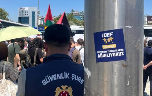 اعتقلت الشرطة التركية 16 ناشطًا من لجنة العمل الفلسطينية بعد احتجاج داخل معرض IDEF2025 للصناعات الدفاعية في إسطنبول، تنديدًا بمشاركة شركات تورّد أسلحة تُستخدم ضد الفلسطينيين، مثل "لوكهيد مارتن" و"بي إيه إي سيستمز". ويواجه المعتقلون تهمًا بينها "إهانة الرئيس" بسبب هتافات انتقدت التعاون العسكري مع الاحتلال.
