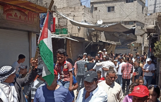 وأفادت "مجموعة العمل من أجل فلسطينيي سوريا" بانطلاق مسيرة ضخمة في "مخيم اليرموك" بالعاصمة دمشق، رفع خلالها المتظاهرون أعلام فلسطين وسوريا، ورددوا شعارات منددة بالجوع والحصار، مطالبين بفتح المعابر وإدخال المساعدات الإنسانية فورًا.