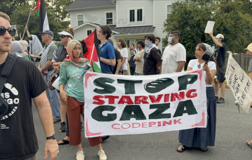 كما كتب المحتجون على الأرض عبارات تدين أكري، المتواجد في فيريجينيا، باعتباره شريك في الإبادة الجماعية، وأعربت عائلتان من سكان الحي عن دعمهم للوقفة.