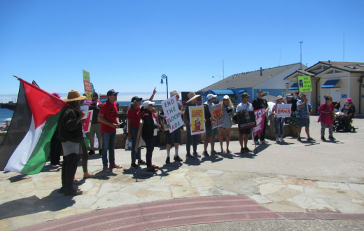 احتشدت منظمة "كود بينك – سنترال كوست" على شاطئ أفيلا في كاليفورنيا يوم أمس، في وقفة تجديد دعمها لفلسطين ومطالبة بإنهاء الحصار المفروض على غزة.