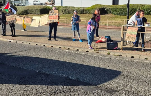 احتجت مجموعة “الناس ضد رافائيل” عند مصنع “رفائيل” للأسلحة في نيوكاسل، وقرعت الأواني والمقالي رمزًا لحصار المساعدات والتجويع القسري في غزة.