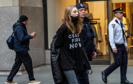 ظهرت شيفر مرتدية قميصًا كتب عليه "وقف إطلاق النار الآن"، وحاملة لافتة احتجاجية، قبل أن تُعتقل مع نحو 50 متظاهرًا آخرين، وُجهت إليهم تهم مثل التعدي على الممتلكات أو السلوك غير المنضبط.