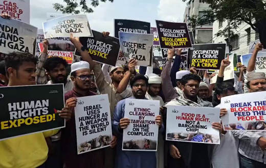 نظّمت منظمة "الطلاب الإسلاميين في الهند" (SIO)، يوم الجمعة 1 أغسطس/آب، وقفة احتجاجية مؤيدة لفلسطين داخل مسجد "العزيزية" في منطقة "مهديباتنام" بمدينة حيدر آباد.
