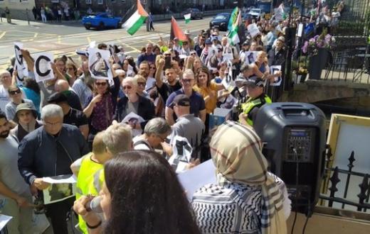 قام متظاهرون مؤيدون لفلسطين بتعطيل فعالية كان يشارك فيها رئيس الوزراء الاسكتلندي جون سويني. وخلال مقابلة على المسرح مع الممثلة الكوميدية سوزان موريسون، تمّت مقاطعة الحدث خمس مرات من قبل ست مجموعات مختلفة من المتظاهرين، طالبوا خلالها بإنهاء تمويل شركات الأسلحة عبر الوكالة الاقتصادية التابعة للحكومة الأسكتلندية.