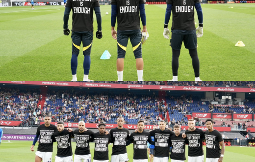 ارتدى لاعبو نادي فنربخشة التركي لكرة القدم قمصانًا كتب عليها "أوقفوا الجرائم ضد الإنسانية" و"كفى!" خلال عمليات الإحماء قبل مواجهة نادي فينورد الهولندي في تصفيات دوري أبطال أوروبا.