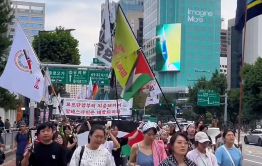 حيث رفع المشاركون الأعلام الفلسطينية ورددوا هتافات تطالب بوقف جريمة التجويع التي يفرضها الاحتلال على أهالي القطاع.