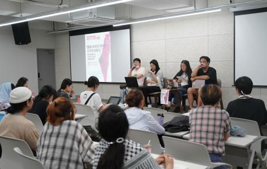 ينظم الحراك" الطارئ للمجتمع المدني الكوري للتضامن مع فلسطين" ، وهو تحالف يضم أكثر من 280 منظمة، اعتصامًا فرديًا يوميًا أمام السفارة الصهيونية في سيول، للمطالبة بوقف الإبادة الجماعية المستمرة في غزة.