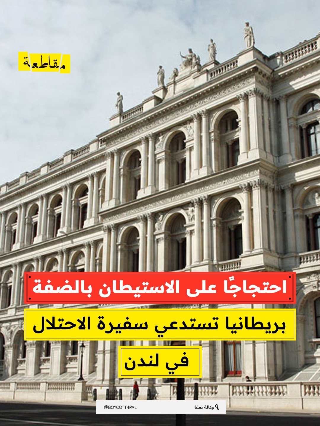 استدعت وزارة الخارجية البريطانية، يوم أمس الخميس، سفيرة الاحتلال في لندن تسيبي حوتوفلي، على خلفية مصادقة حكومة الاحتلال على مخطط استيطاني ضخم في الضفة الغربية المحتلة.