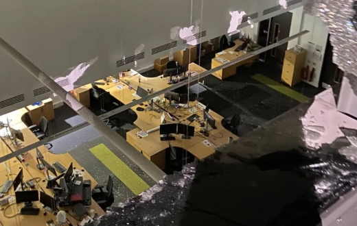 وقد زعمت الشرطة أن الحادث أسفر عن أضرار جسيمة لنوافذ السقف والألواح الشمسية، فيما أظهرت لقطات الفيديو المجموعة وهي تقتحم البوابات بسيارة دفع رباعي قبل إطلاق صاروخ أحمر وتسلق سلم للوصول إلى سطح المصنع.