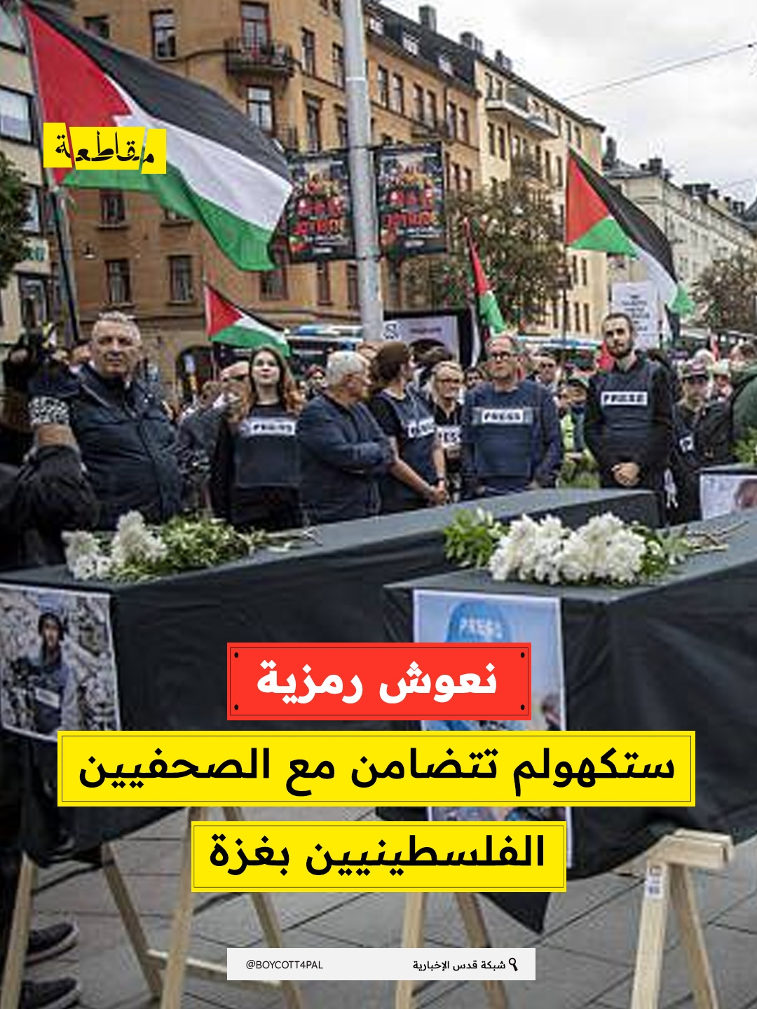 نظمت فعاليات في العاصمة السويدية ستكهولم للتنديد بالجرائم التي يرتكبها الاحتلال الإسرائيلي بحق الصحفيين الفلسطينيين. ورفع المحتجون نعوشًا رمزية وصورًا للصحفيين الذين ارتقوا في غزة خلال تغطيتهم للأحداث، في إشارة مؤثرة إلى التضحية التي قدموها من أجل نقل الحقيقة.