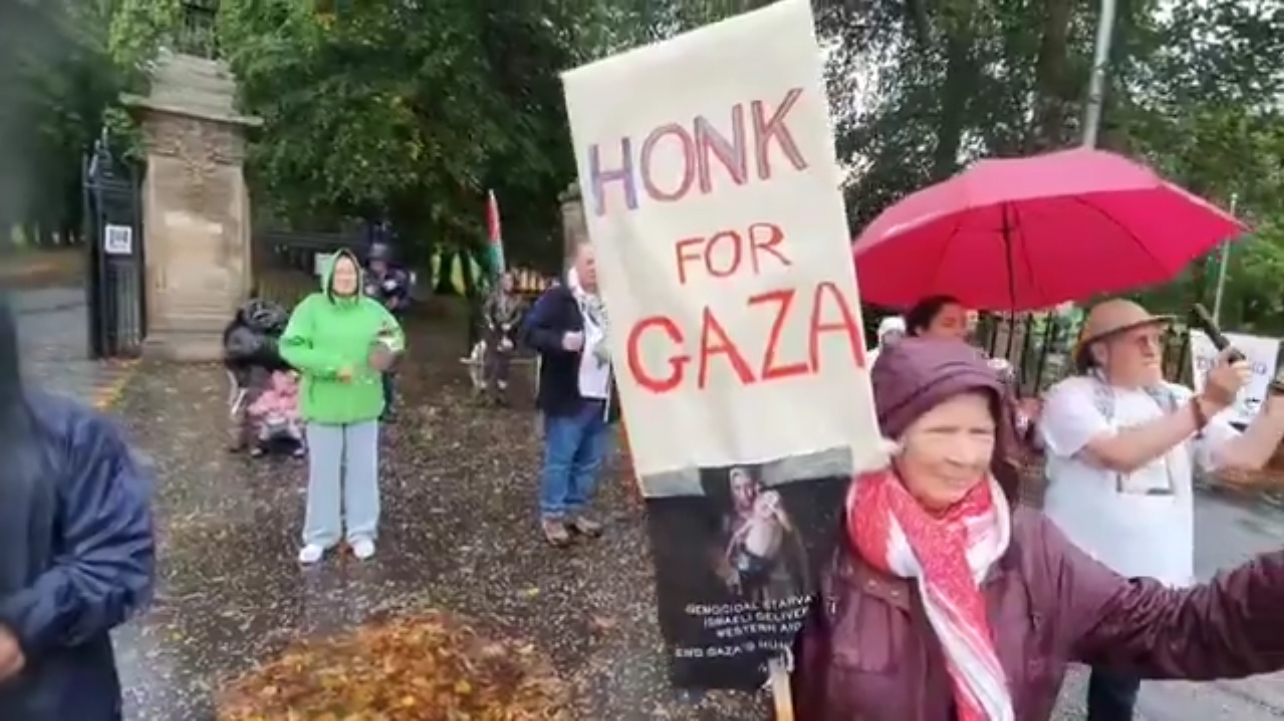 تظاهر العشرات من المؤيدين لفلسطين على جسر للمشاة يطل على دوار بارك سكوير في مركز مدينة شيفيلد البريطانية، حيث رفعوا أعلامًا فلسطينية كبيرة ولافتات مطالبة بوقف الحرب على غزة. وقد نظم تجمع مماثل أمس