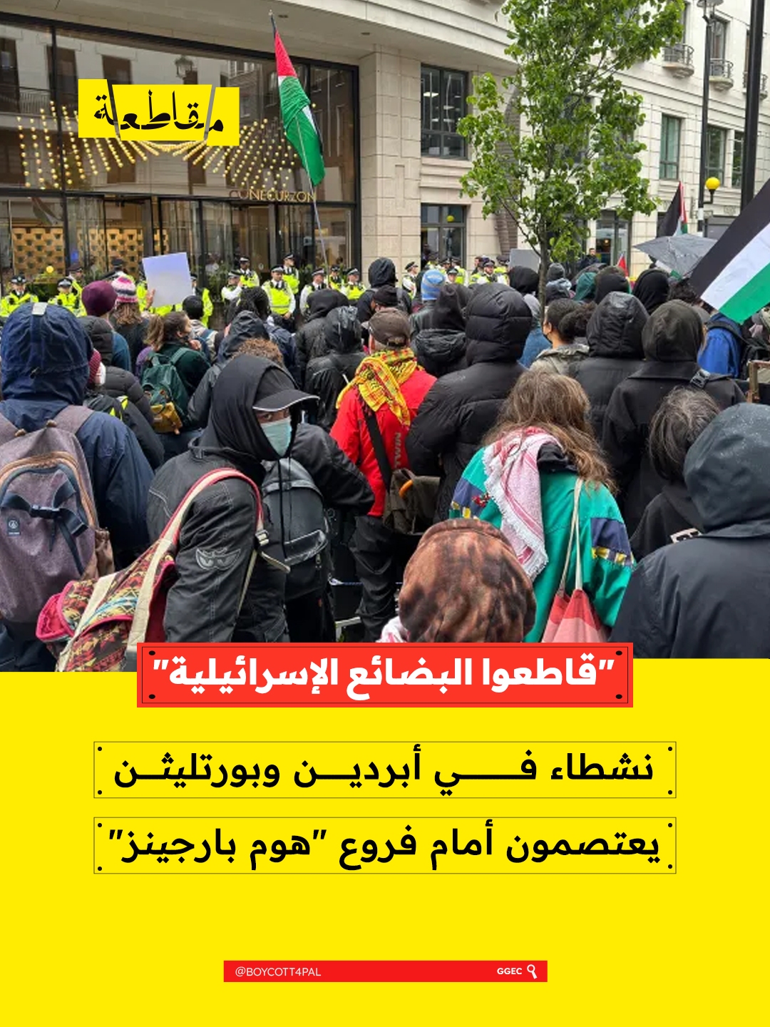 "قاطعوا البضائع الإسرائيلية".. نشطاء في أبردين وبورتليثن يعتصمون أمام فروع "هوم بارجينز"