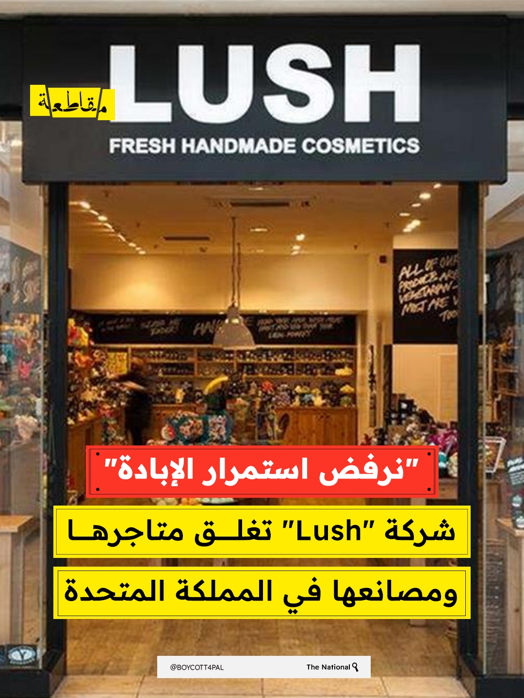 أعلنت شركة Lush لمستحضرات التجميل عن إغلاق جميع متاجرها في المملكة المتحدة، بالإضافة إلى مصانعها وموقعها الإلكتروني، اليوم الأربعاء، في إطار احتجاجها على الإبادة الجماعية التي ترتكبها "إسرائيل" في فلسطين.