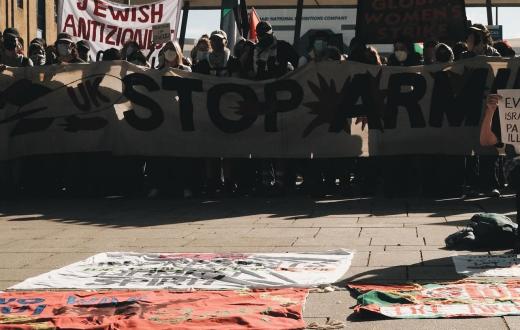 تجمع مئات المتظاهرين المؤيدين لفلسطين، أمس الثلاثاء، خارج معرض للأسلحة في مركز “إكسل” بلندن، احتجاجًا على مشاركة شركات دفاع إسرائيلية في المعرض، في ظل استمرار الحرب على غزة. ولوّح المحتجون بالأعلام الفلسطينية ورفعوا لافتات كتب عليها: “المملكة المتحدة: أوقفوا تسليح إسرائيل. أوقفوا الإبادة الجماعية في غزة”، فيما أعلنت شرطة العاصمة اعتقال ثلاثة أشخاص بتهمة الاعتداء على ضباط.