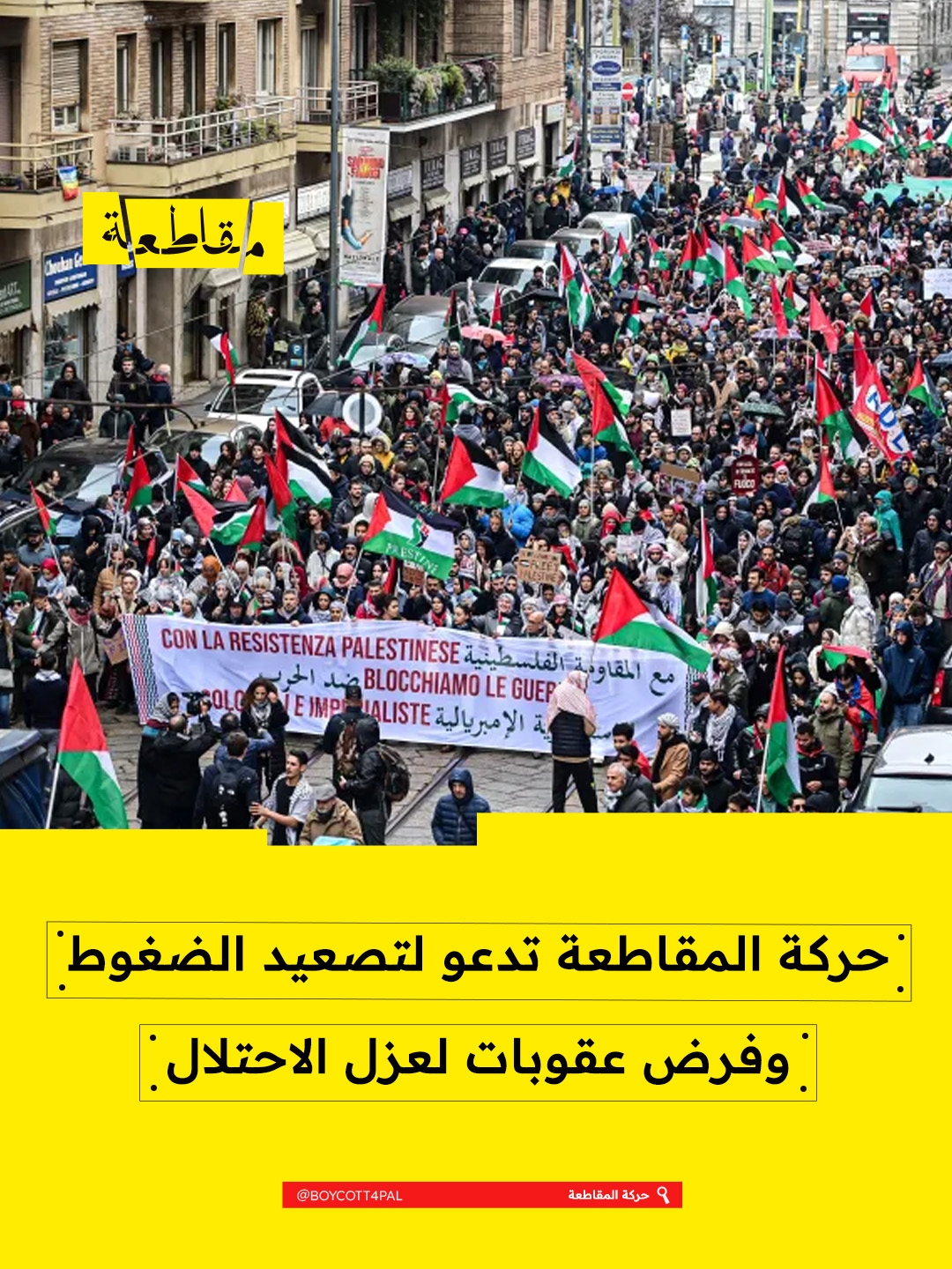 دعت حركة المقاطعة وسحب الاستثمارات وفرض العقوبات (BDS) إلى تصعيد الضغوط الشعبية والسياسية لعزل "إسرائيل"، التي تواصل ارتكاب جرائم إبادة جماعية بحق الشعب الفلسطيني. وطالبت الحركة الحكومات بفرض عقوبات قانونية فورية لوقف العدوان ومحاسبة المسؤولين عن الجرائم.
