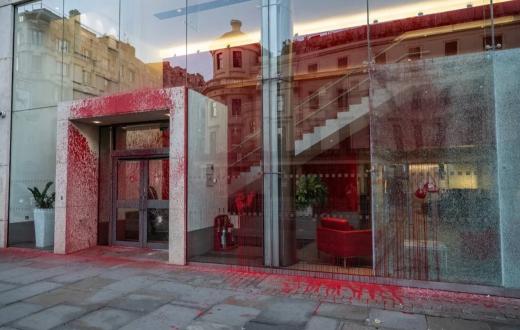 استهدفت مجموعة جديدة تُدعى “أوقفوا العقد” مكتب شركة "باين وشركاه" في لندن احتجاجًا على تعاملاتها مع شركة "إلبيت سيستمز" الإسرائيلية، أكبر شركة لتصنيع الأسلحة. من خليل تحطيم الواجهات الزجاجية وتلطيخها بالطلاء الأحمر.