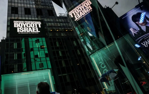 أطلق تحالف من منظمات المناصرة وجماعات المشجعين حملة #GameOverIsrael في ميدان تايمز سكوير بنيويورك، عبر لوحة إعلانية ضخمة دعت اتحادات كرة القدم الأوروبية إلى مقاطعة المنتخب الإسرائيلي ومنع لاعبيه من المشاركة في المسابقات المحلية.
