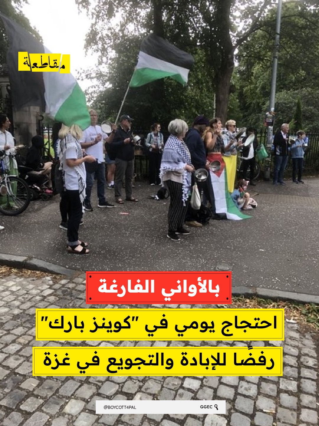 تواصلت الاحتجاجات في “كوينز بارك” باستخدام الأواني الفارغة، تعبيرًا عن رفض المشاركين للإبادة والتجويع الذي يتعرض له الفلسطينيون في غزة. وتستمر الفعاليات اليومية في الحديقة منذ أسابيع، حيث يشارك مئات المتظاهرين في مسيرات رمزية وهتافات تضامنية، مطالبين بوقف الهجمات العسكرية وفرض عقوبات على الاحتلال الإسرائيلي.