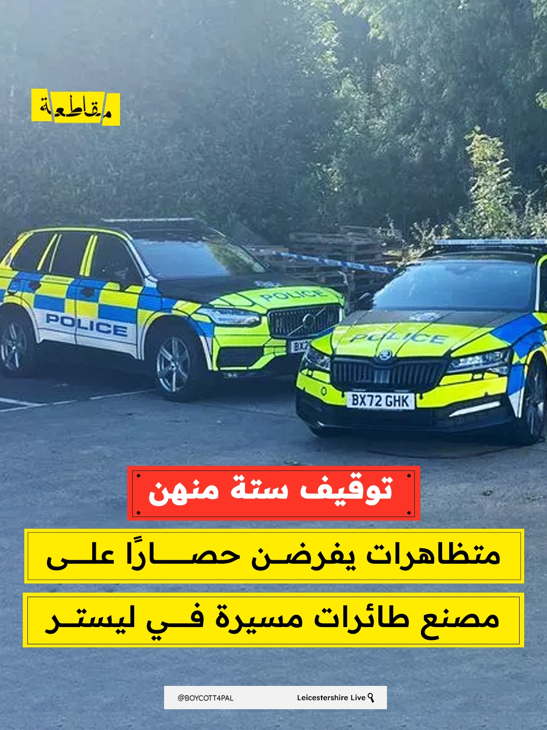 ألقت الشرطة البريطانية القبض على ست نساء بعد أن نفّذ متظاهرون مؤيدون لفلسطين احتجاجًا أمام مصنع UAV Tactical Systems على أطراف مدينة ليستر صباح أمس الثلاثاء، 23 سبتمبر. وقع الحادث في مجمع ميريديان للأعمال بمدينة براونستون، حيث استُدعيت الشرطة قبل الساعة 5:15 صباحًا.